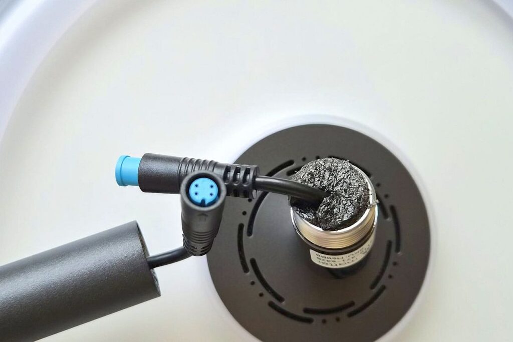 El montaje es intuitivo y sencillo. Las secciones metálicas se atornillan firmemente y el cableado interno utiliza un sistema de conectores guiados que elimina las conjeturas. La instalación solo lleva unos minutos sin necesidad de herramientas especializadas.